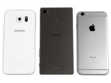 The Galaxy S6, Xperia Z5 and iPhone 6s side by side